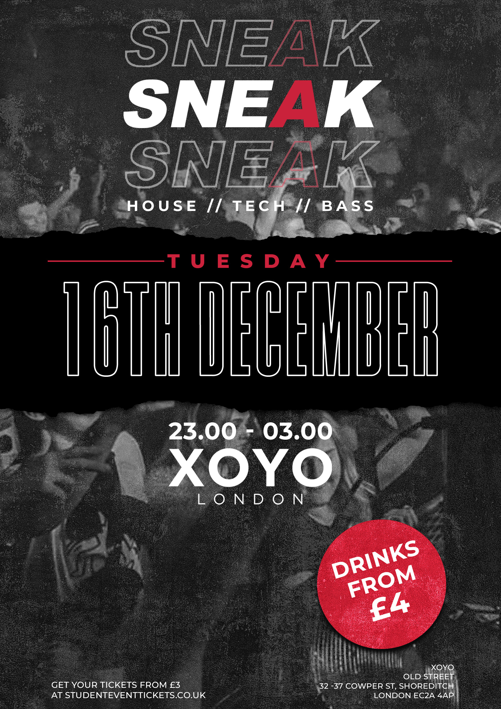 SNEAK RAVE @ XOYO - TUESDAY 16TH DECEMBER